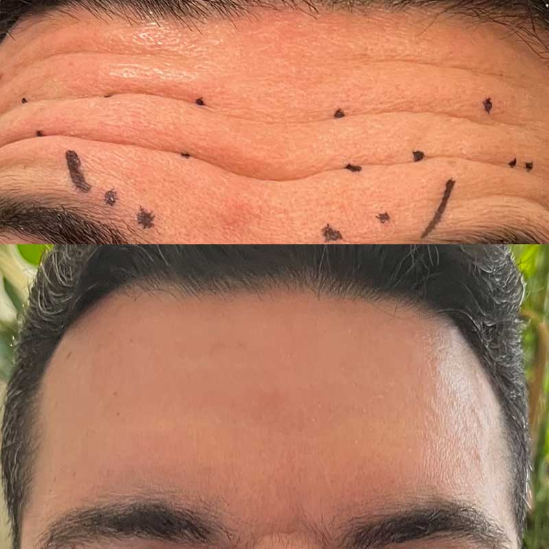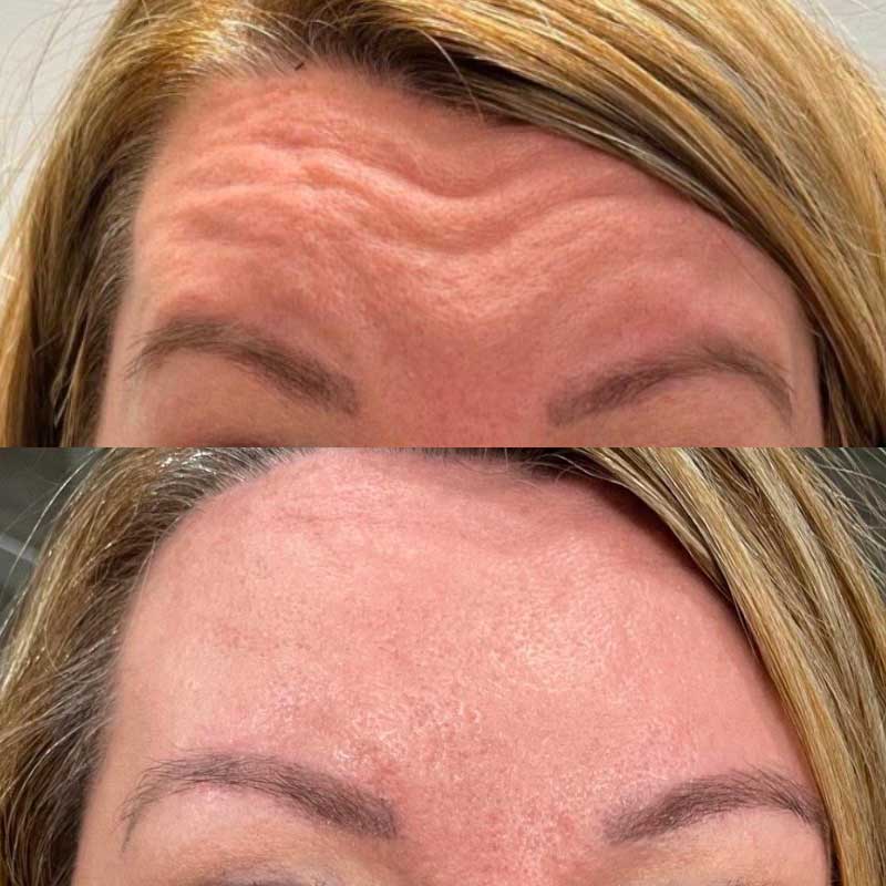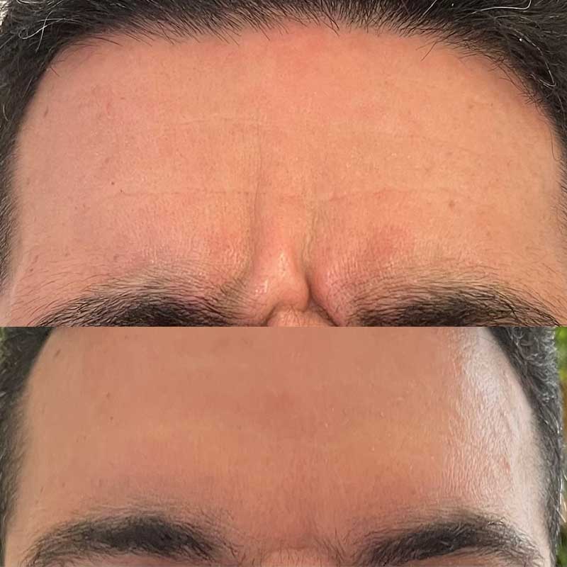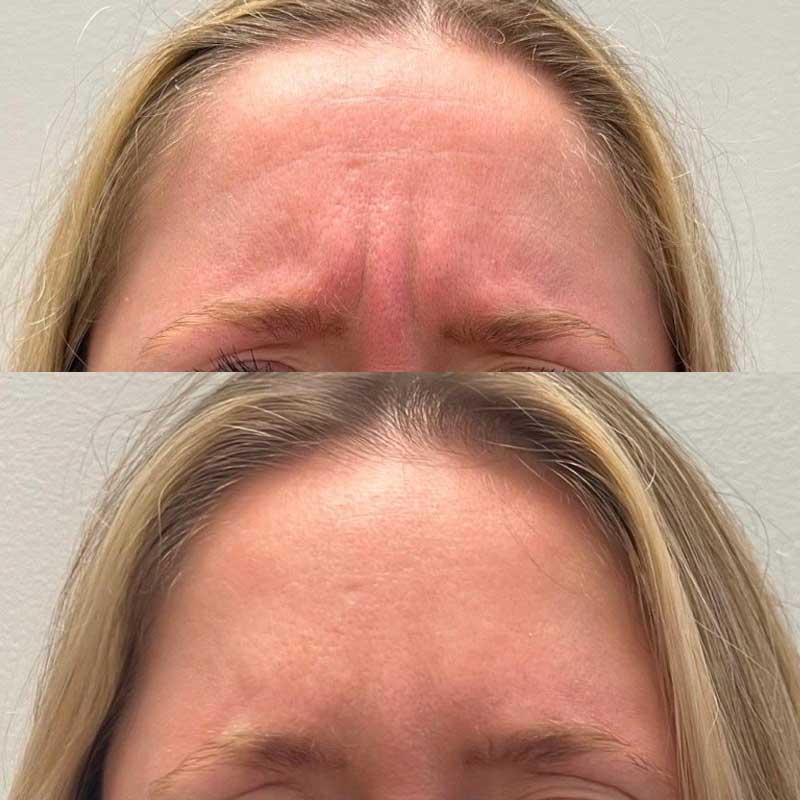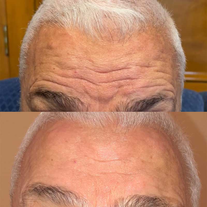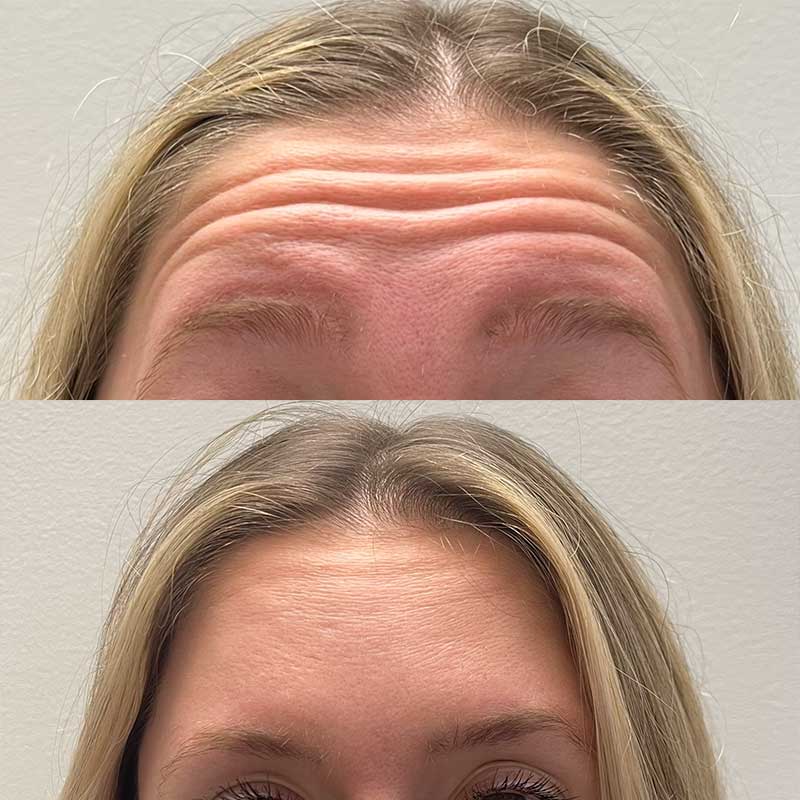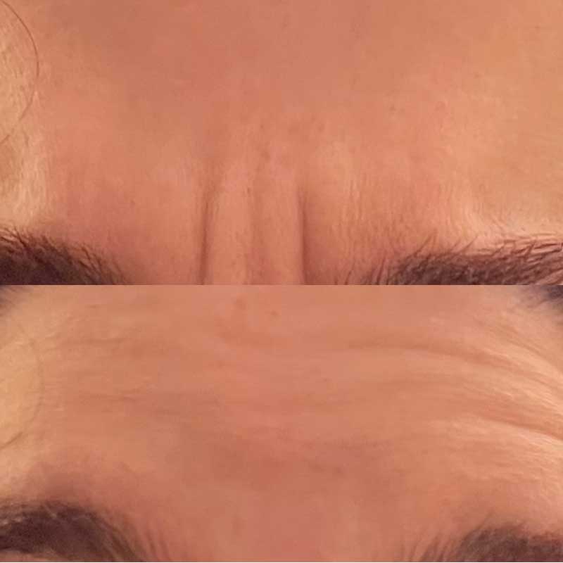 Treatment of forehead lines and glabellar lines for a natural, rested appearance.