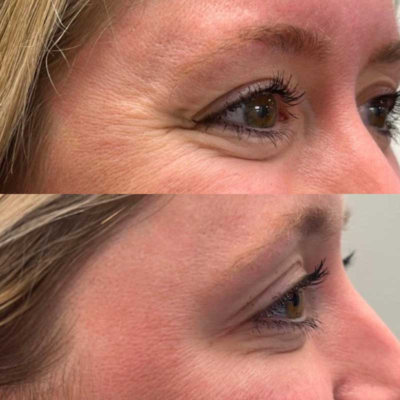 Softening crow's feet and lateral eye lines while preserving natural expression.